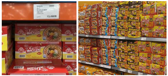 창고형 할인점의 가장 큰 특징은 SKU 수가 적다는 점입니다. 일반 대형마트가 3만~5만 개 이상의 SKU를 운영하는 반면, 코스트코는 약 3,500개 내외의 상품만을 취급합니다. 이는 다양성을 포기하는 대신, ‘잘 팔리는 상품’만을 선별해 높은 회전율을 확보하겠다는 전략입니다. 예를 들어 라면 매대를 떠올려보면 차이가 분명합니다. 일반 대형마트에서는 다양한 브랜드와 다양한 구성의 제품을 선택할 수 있습니다. 반면 창고형 할인점에서는 대표 상품 한두 개를 대용량 묶음으로 판매합니다. 선택지는 줄지만 가격 경쟁력은 극대화됩니다.